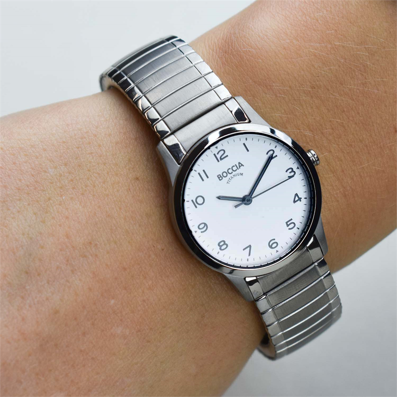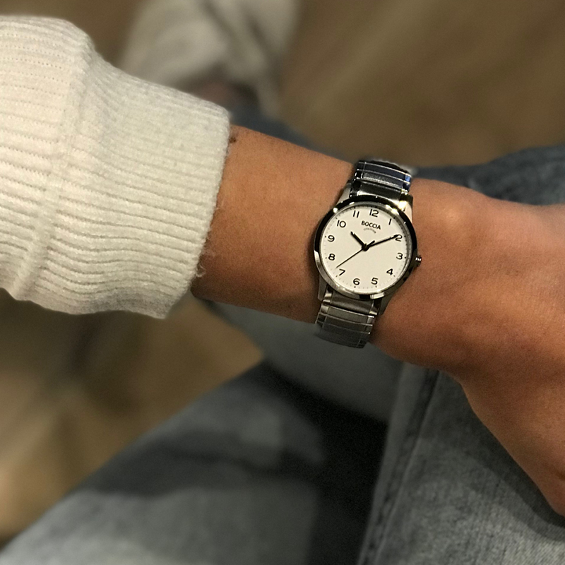 Dit dameshorloge van Boccia Titanium heeft een nette uitstraling. De zilverkleurige titanium horlogekast zorgt voor een stijlvolle look en de witte wijzerplaat maakt het horloge chique. Het horloge heeft een ronde kast met een diameter van 29mm, een mineraalglas en is 3ATM. Combineer dit prachtige exemplaar met de andere sieraden van Boccia Titanium voor een complete look. Aan de titanium kast zit een titanium schakelband.