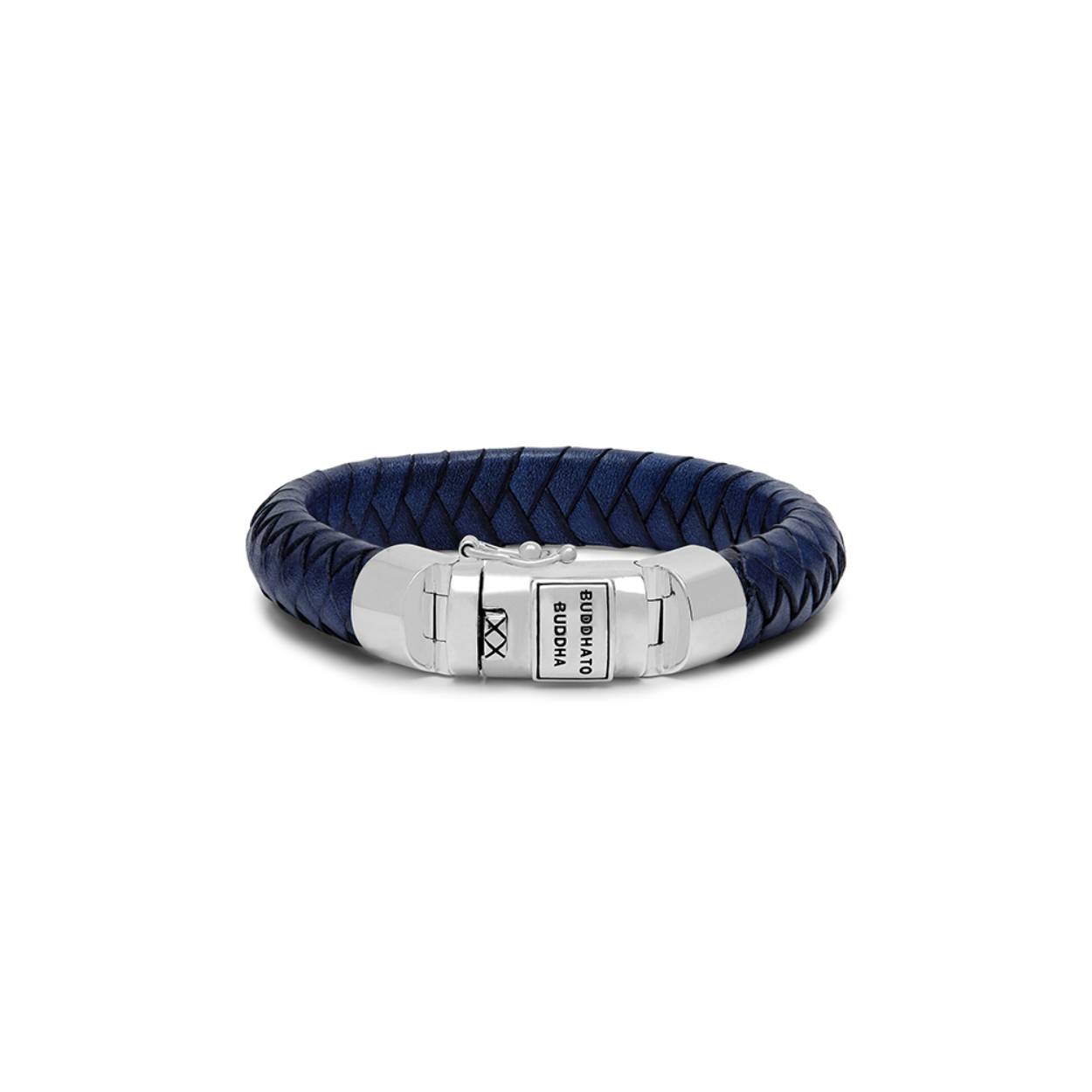 Buddha To Buddha  blauw gevlochten leren band met 1e gehalte zilverensluiting en eindstuk - 544BU- Ben navy - F = 21 cm