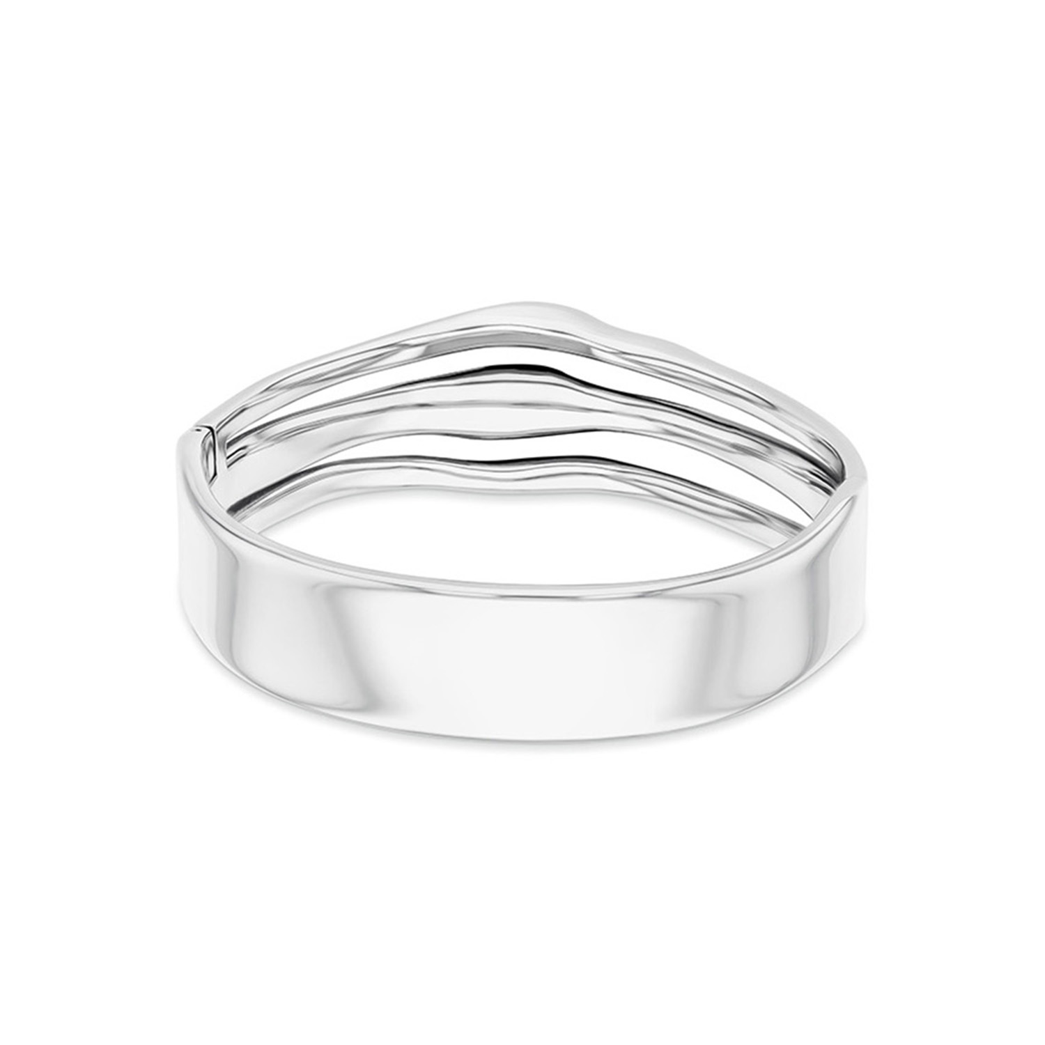 Deze stalen dames bangle van Calvin Klein met nr CJ35000718 heeft een sierlijk uiterlijk. De zilverkleurige bangle armband heeft bovenop 3 aparte sculpturele banden met ronde vormem.  Een fantasierijk geheel. Geschikt voor een pols van 17,5cm. Leuk te combineren met andere sieraden uit de serie van Calvin Klein.