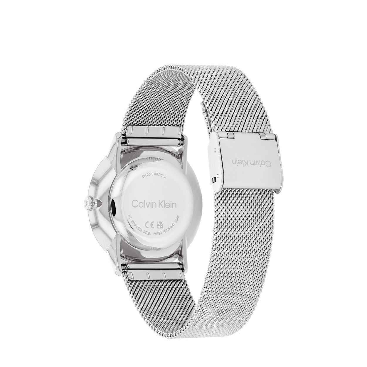 Dit Calvin Klein dameshorloge met nr CK25100001 is een chique en sportief ontwerp. De stijlvolle ronde platte stalen kast heeft een gladde bezel en een zilverwitte sunray wijzerplaat met hele fijne uursaanduiding. Aan het horloge zit een zilverkleurige milanese band. Het sierlijke horloge heeft een mineraalglas, een doorsnee van 37mm en is 3ATM.
