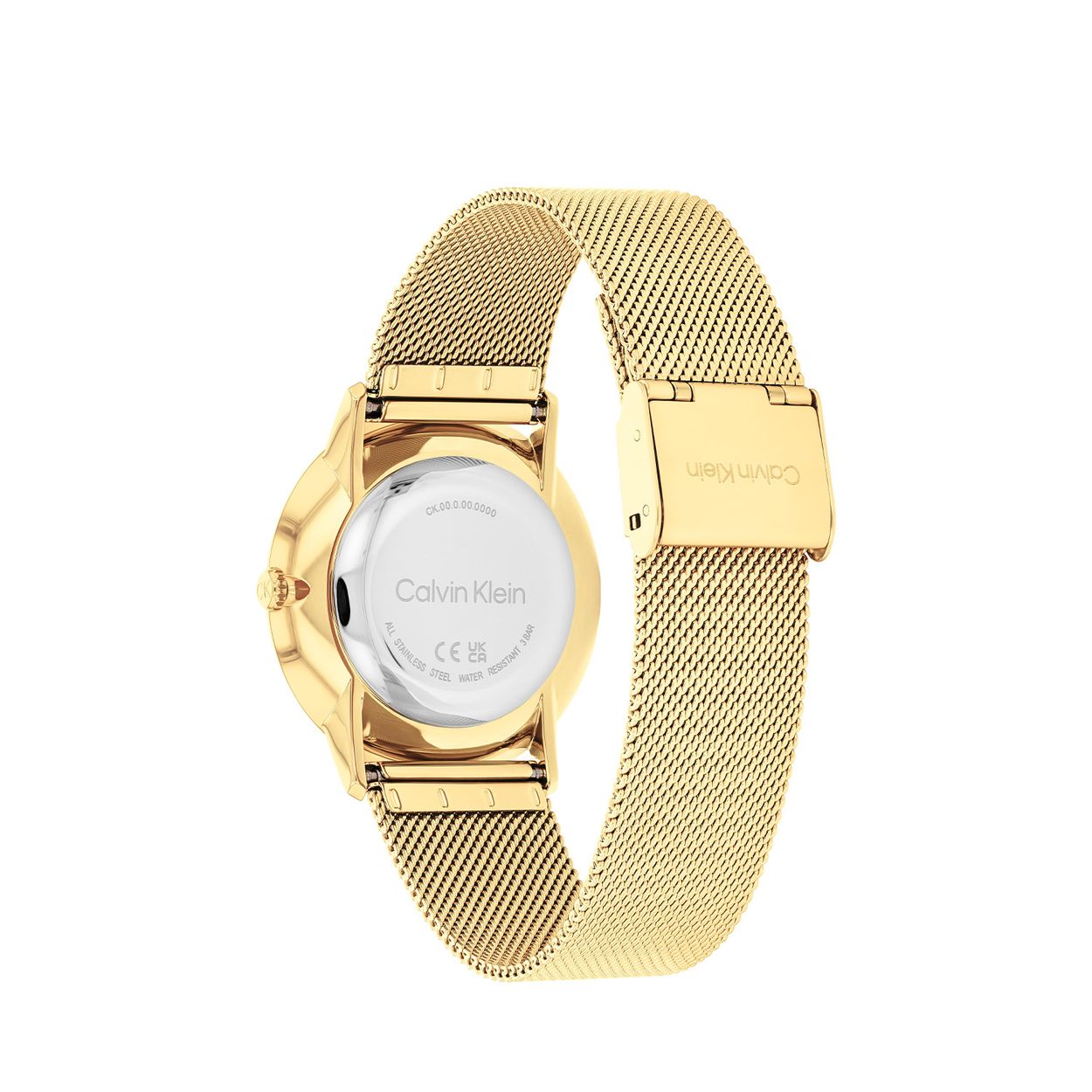 Dit Calvin Klein dameshorloge met nr CK25100003 is een chique en sportief ontwerp. De stijlvolle ronde stalen goudkleurige kast heeft een gladde goudkleurige bezel en een grijze sunray wijzerplaat met hele fijne uursaanduiding. Aan het horloge zit een goudkleurige milanese band. Het sierlijke horloge heeft een mineraalglas, een doorsnee van 37mm en is 3ATM.