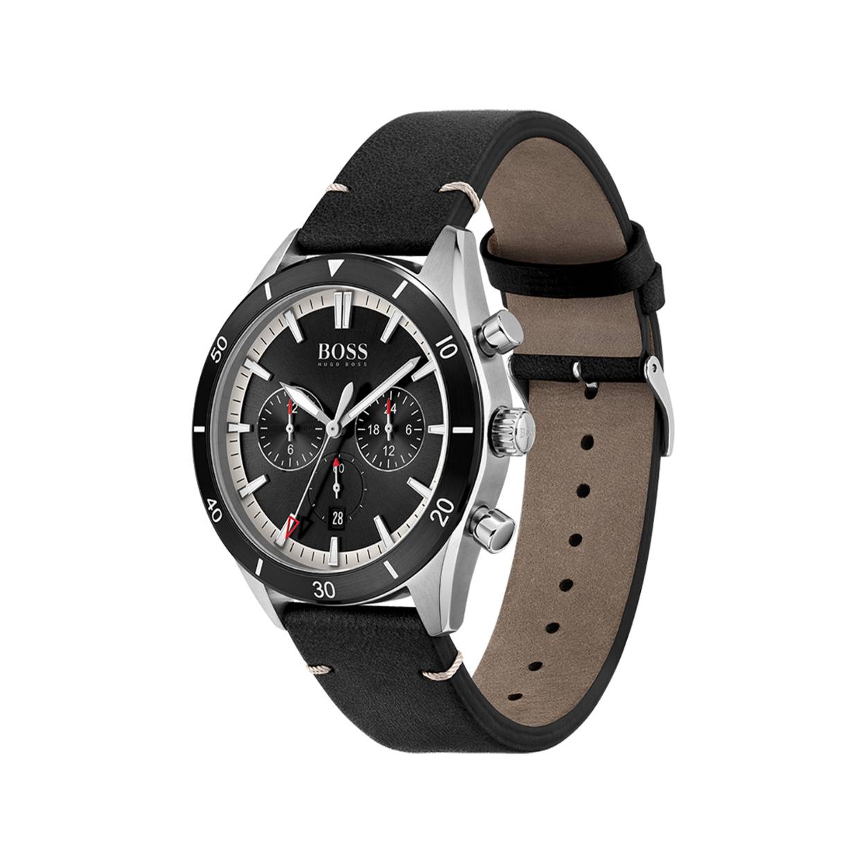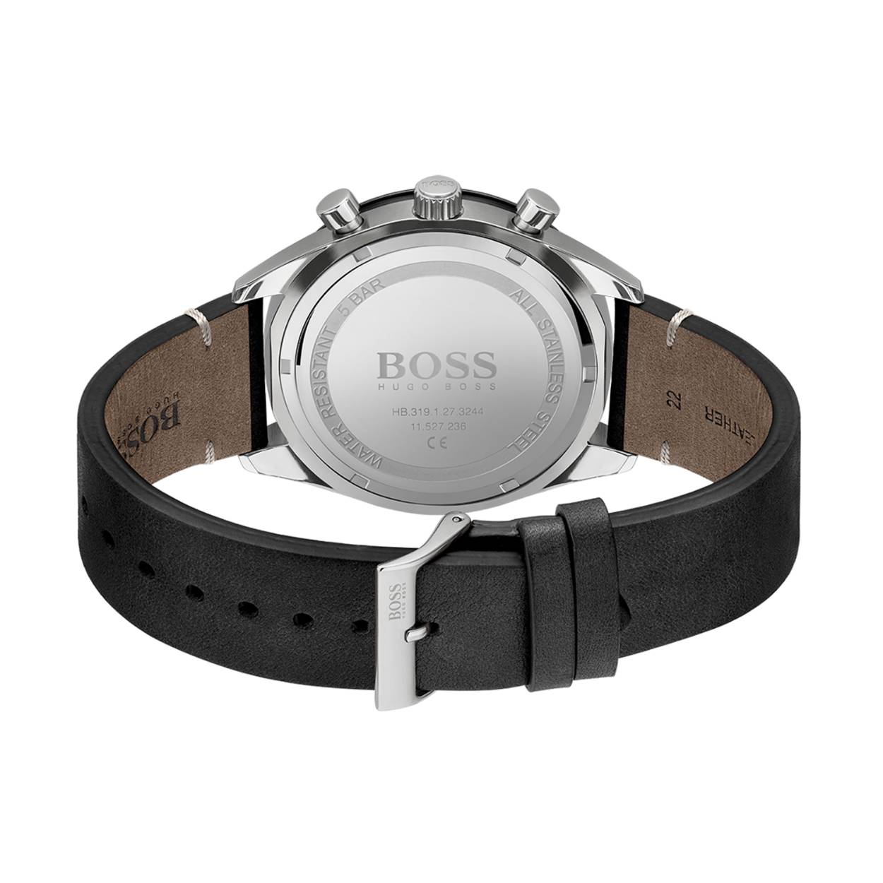 Dit stijlvolle horloge van Hugo Boss is een horloge met een Quartz uurwerk. Het horloge heeft een diameter van 44 mm, en is 11 mm dik. De weergave van de tijd is analoog. Verder is het horloge voorzien van een Mineraal horlogeglas. Het horloge is 5 bar (douchen) waterdicht, en heeft een  zwart leren band.