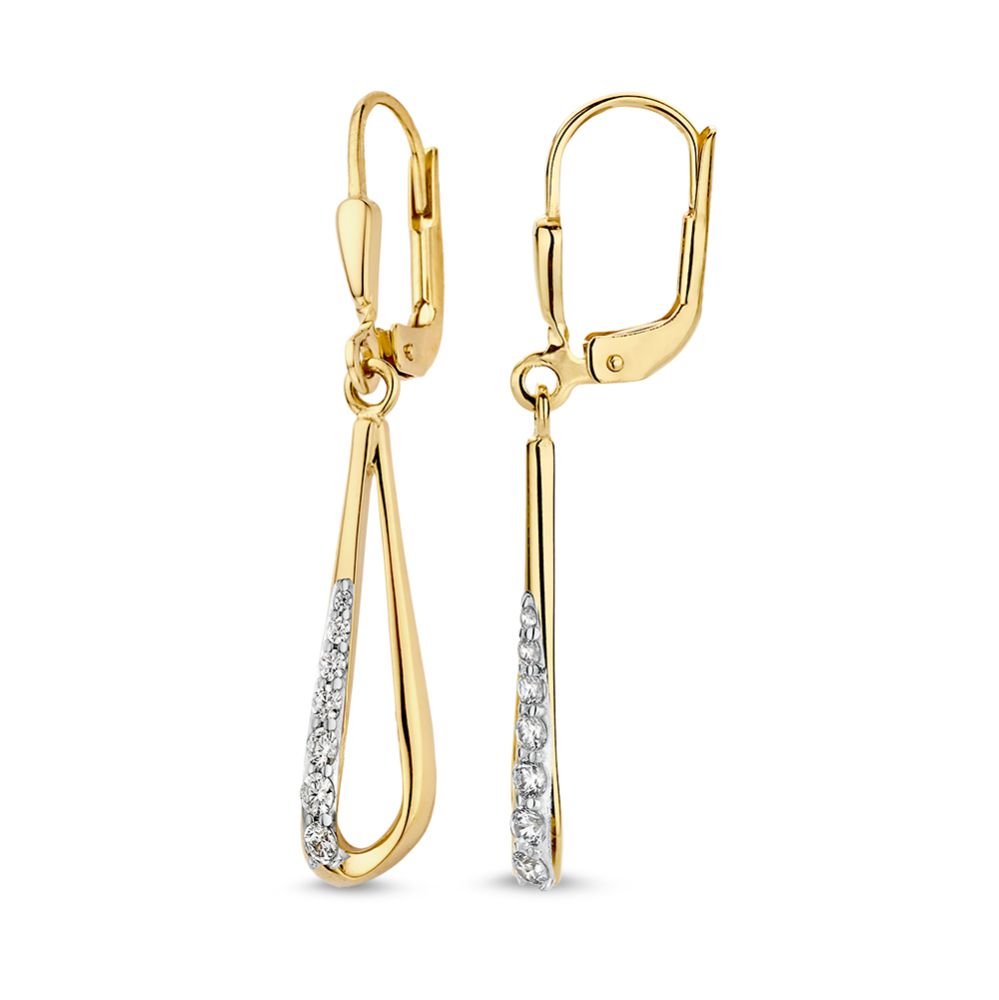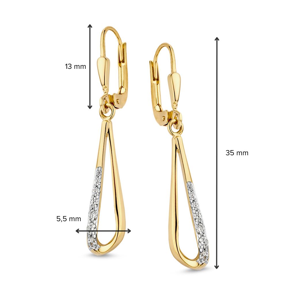 Geelgouden oorhaken gezet met zirkonia's.