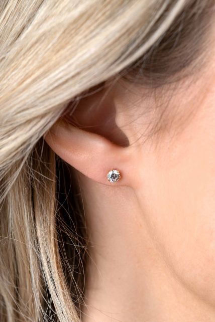 4mm ZINZI Gold 14 krt gouden oorknoppen zespootszetting met ronde witte zirconia ZGO455